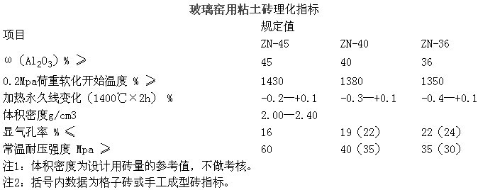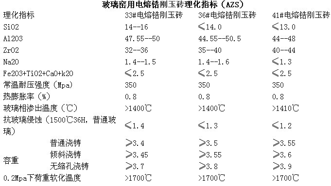 玻璃窯用電熔鋯剛玉、粘土磚的理化指標