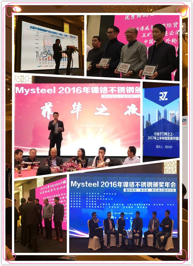 20161123日,由上海鋼聯主辦的“2016年鎳鉻不銹鋼頒獎年會在上海召開。本次大會邀請了行業杰出領袖、知名企業代表等參加,試圖從不同的角度去分析、探討行業動態,江蘇江能新材料科技有限公司常務副總、營銷副總應邀出席本次大會。