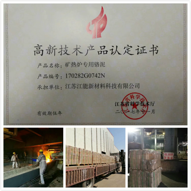 江能礦熱爐專用鉻泥自2015年研發(fā)成功并投放市場(chǎng),經(jīng)過國(guó)內(nèi)多家大型鐵合金冶煉企業(yè)使用,在改善出鐵口燒結(jié)性能和抗沖刷能力、保證鐵口深度、開口堵口容易、環(huán)保無煙氣、降低勞動(dòng)強(qiáng)度等諸多方面性能顯著,獲得了廣泛認(rèn)可。
