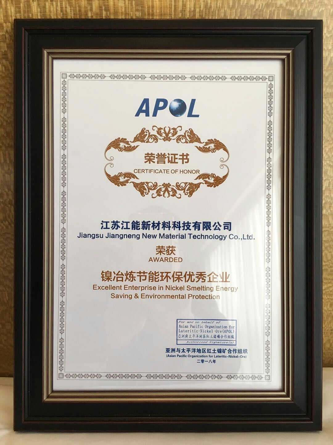 10月11-13日,2018紅土鎳礦行業大會暨亞太地區紅土鎳礦合作組織(APOL)年會在四川成都召開,江蘇江能新材料科技有限公司應邀參加,并榮獲“鎳冶煉節能環保優秀企業”,這也是本次行業大會唯一獲獎的耐火材料企業。