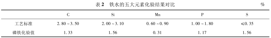 追根溯源,爐齡短是因?yàn)闇囟雀,溫度高是因(yàn)殍F水流動(dòng)性差,因此對(duì)影響鐵水流動(dòng)性的五大元素(C、Si、Mn、P、S)進(jìn)行分析,其化驗(yàn)結(jié)果見表2。由表2可知,能提高鐵水流動(dòng)性的磷元素含量并不低,而能降低流動(dòng)性的硫元素含量則超出標(biāo)準(zhǔn)4.5倍。