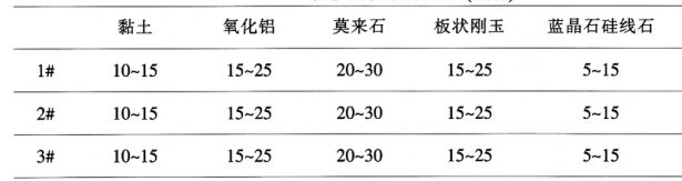 實驗主要原料如下:粘土、煅燒氧化鋁(ω(Al₂0₃)≥99,D0.5為0.043-0.1mm)、煅燒莫來石粉(Al₂0₃)≥65,D0.5為0.1-0.5mm)、板狀剛玉,(ω(Al₂0₃)>199.4,D0.5為0.043-0.2mm)、藍晶石和硅線石。實驗所用的泡沫劑為十二烷基磺酸鈉,所用的燃盡物為鋸末和聚丙乙烯球。結合劑為聚乙烯醇(PVA)。