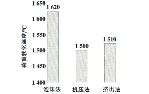 通過比較三種不同成型方式制備的莫來石輕質隔熱磚的性能。我們可以看出,采用泡沫法具有隔熱效果好、荷重軟化溫度高、強度好、重燒線變化率小等優點,因而具有明顯的優勢。