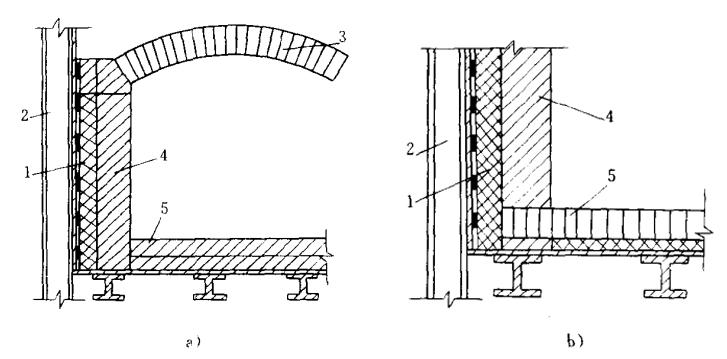 1--隔熱層;2-骨架;3-爐頂;4-爐墻;5-爐底;