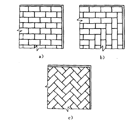 圖2 爐底砌筑形式a)錯縫形b)席紋形c)人字形