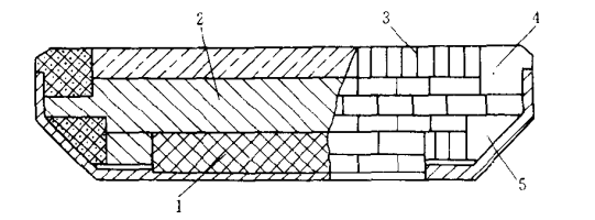 圖5 臺車的砌筑1-硅藻土磚;2-耐火粘土磚;3-鎂磚;4-側板磚;5-三角磚