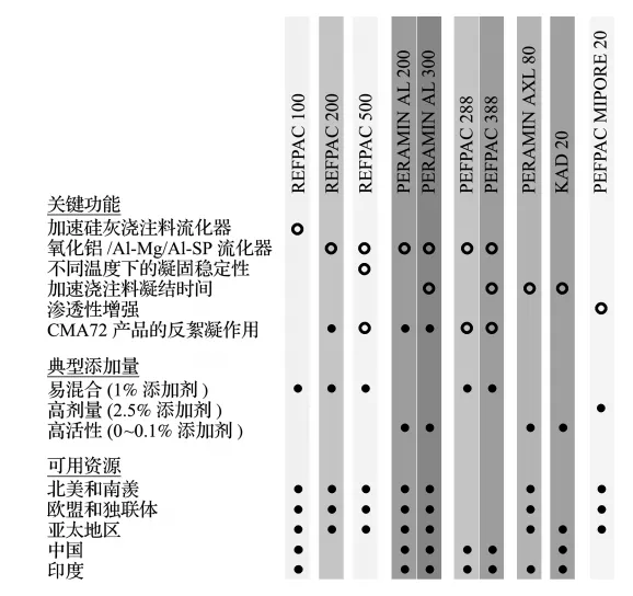 在不同的地方獲取活性化合物,并在加入低水泥澆注料后具有主要的功能性能,見下圖。